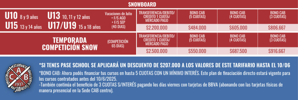 Con un enfoque en la diversión y la seguridad, tus hijos aprenderán a dominar la tabla mientras disfrutan de la nieve con amigos. ¡Únete a la aventura del snowboard y forma parte vos también de CAB SNOW!